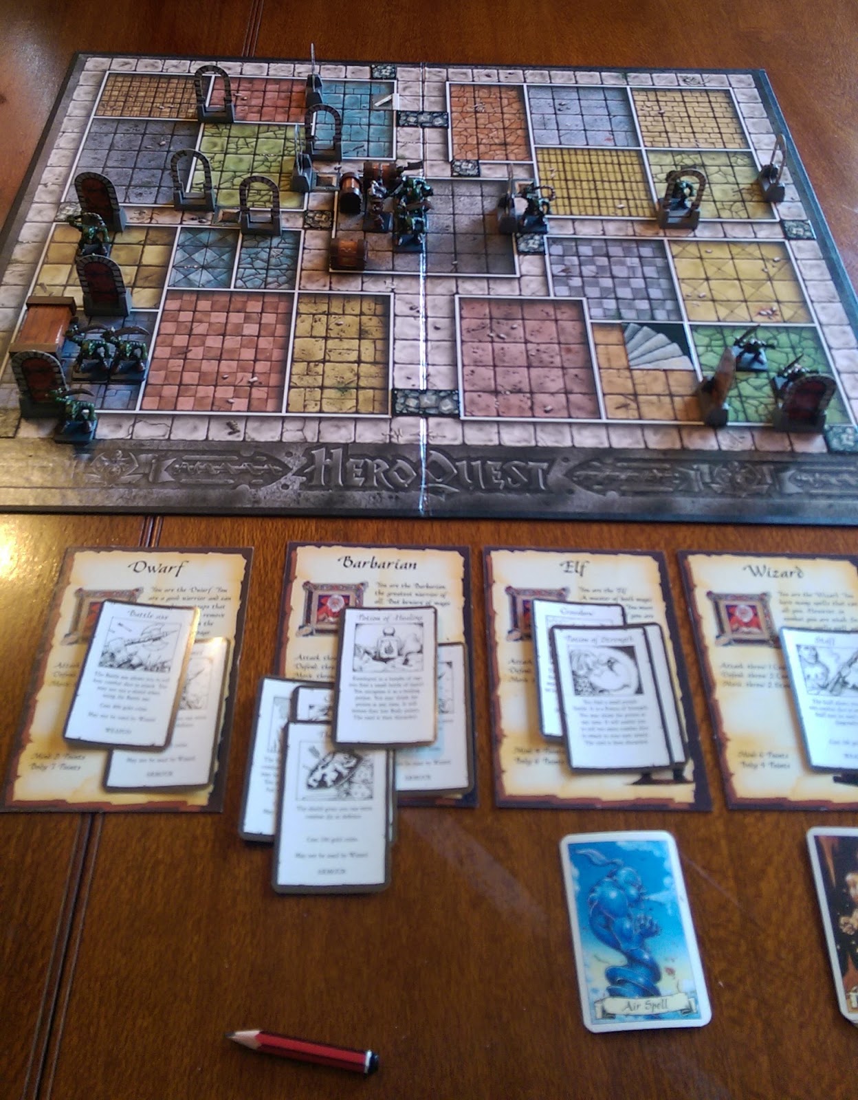 Order of play was Dwarf (Ramble Stumpgrinder), Wizard (Barodis Brighttower), Elf (Silverleaf Fairtree), Barbarian (Grim Axebiter), and the finally the GM or Evil Wizard.